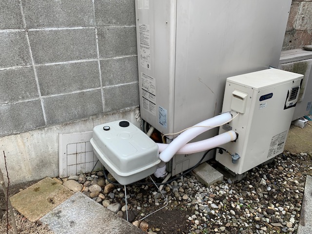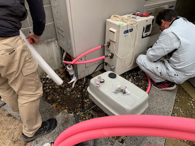 このお正月休み中は、東京からお孫さんも来ることから、なんとかしたい…そうしたお客様の想いを、我々もなんとかしたいということから、仮の灯油ボイラーを設置することにしました。