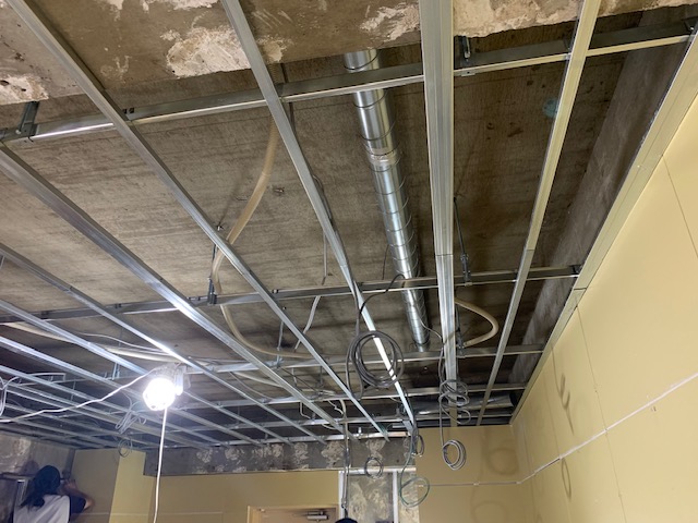 天井にはダウンライトがつくので天井を貼る前に電気の配線を落としておかなければなりません。