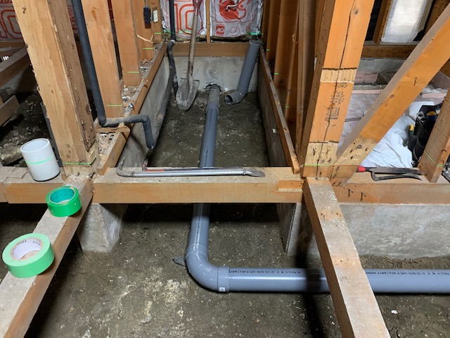 トイレの位置が変更になるので 排水管も新たに敷設していきます。