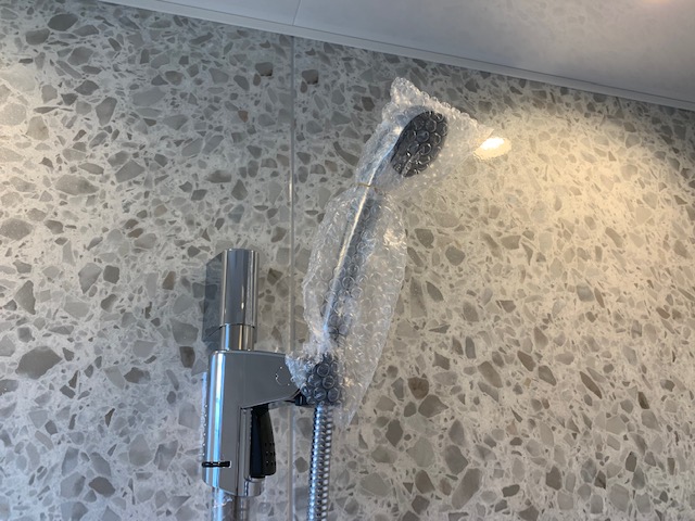 次の日にユニットの組み立てを終えました。 洗い場のカウンターなしにされるかたが増えております。