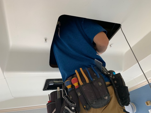 新しい浴暖の試運転を行います。これまでの大きな音が無くなり、静かに動いています。 これからは、お客様も音を気にせずお風呂に入れそうです。