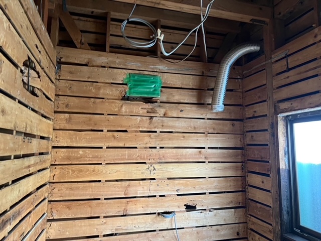 初日は解体工事です。床・壁・天井全て壊していきます。 ダクトを取り付け、電気の配線などを済ませます。