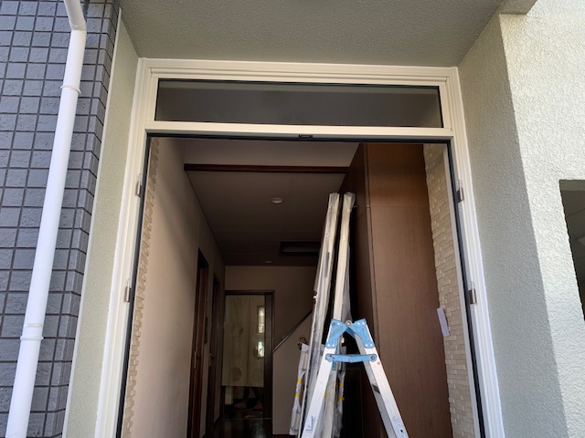 新しい玄関ドアには欄間付きを選ばれました。これで従来よりも採光度がアップされますね。