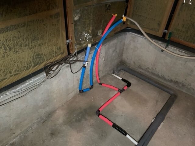 給水給湯配管、排水管の切回しも終えて、いよいよ明日はユニットバスの組立工事日です。 お客様がカタログから選んだ仕様が現物となって目の前に組み上がっていくのでその反応は気になります。 引き続き 宜しくお願い致します。