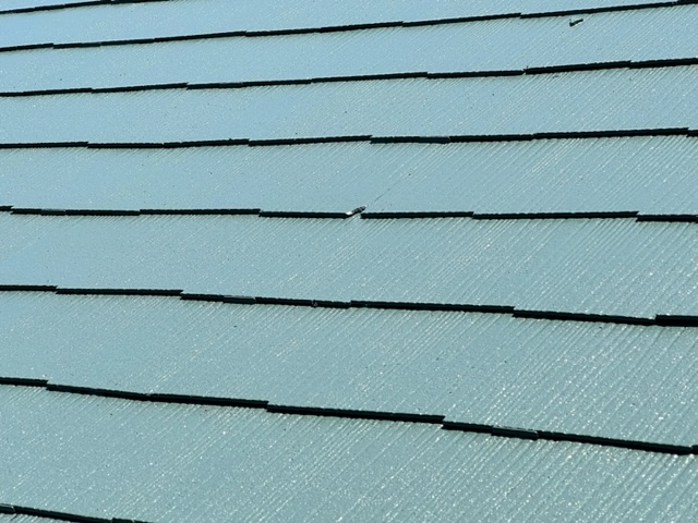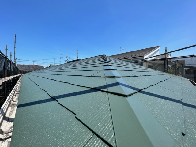 棟の交換を終え、屋根の塗装も終わりました。 塗膜が落ち切ってしまっていた屋根がすっかり生まれ変わまた感じがします。
