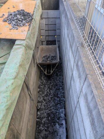 埼玉県川口市 擁壁傾き改修工事 ブロック積み・砂利敷設