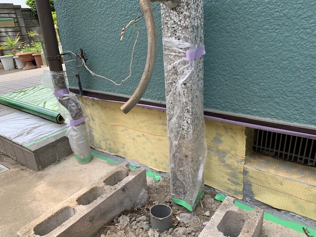 基礎の化粧にだいぶひびがはいってしまい、コーキングなどで補修はしていたのですが、パカパカと浮くくらいになっていたために、基礎の補強工事で対応することとなりました。