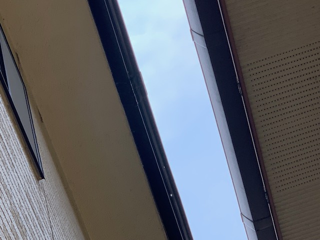 運搬の手伝いをしていると、首筋にポツリと水がかかりました。 ん?と上を見ると、雨樋から前日の雨と思われますが、ポタン、ポタンと落ちてるではありませんか。。