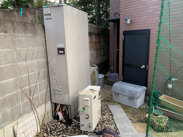 本日のエコキュート交換工事は、二世帯でお住いのお客様宅です。よって、エコキュート交換も二台です。