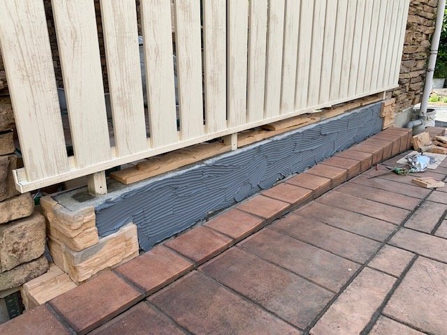 ダイニングバーの工事も大詰めに差し掛かってまいりました。 本日はカウンターのタイル貼りがおこなわれております。