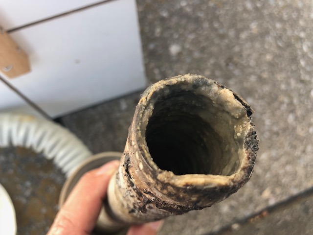 私が施主様宅に到着した頃にはキッチン本体は解体・撤去されておりました。排水のジャバラをみると、油粕がすごいことになっておりました。今回のキッチン交換時期としては妥当だったかもしれませんね。