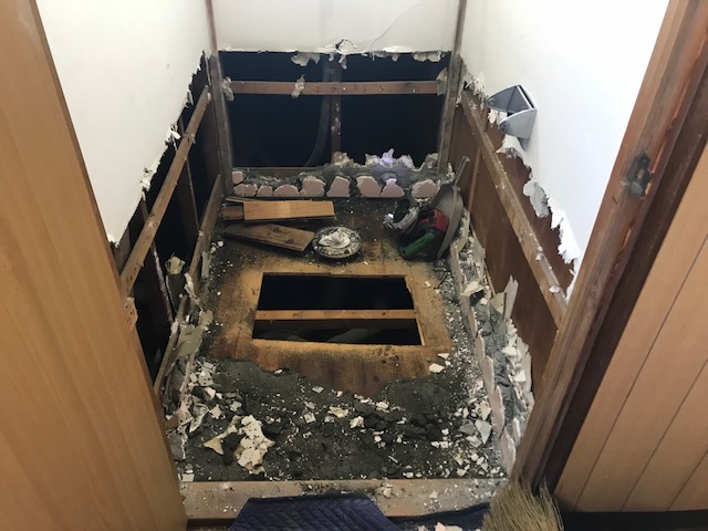 足立区のマンションでは、お風呂、脱衣場、トイレの間取り変更に伴うリフォームが完成間近となりました。