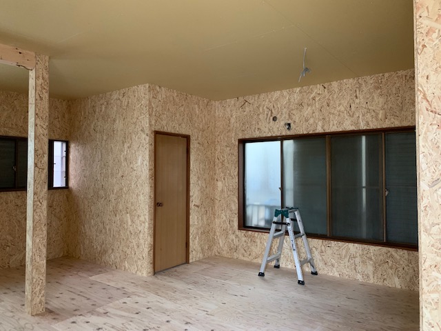 本日で足立区の工事は終了となりました。 一階部分を倉庫として使いたい。 しかし 重いものを置いたりするにあたり 床の傷みやもっと空間を広く使っていきたいというご要望があり 床下が思わしくない状況であったことも重なって床 壁 天井を壊して 床下はベタ基礎に…柱などカットできる部分は梁で持たせて 水回りは台所 浴室・脱衣場もなくして トイレだけを部屋の端に移動させて広い空間を造りました。