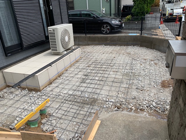 お庭を、コンクリートにしたいとのご要望を受け、工事にはいらせて頂きました。