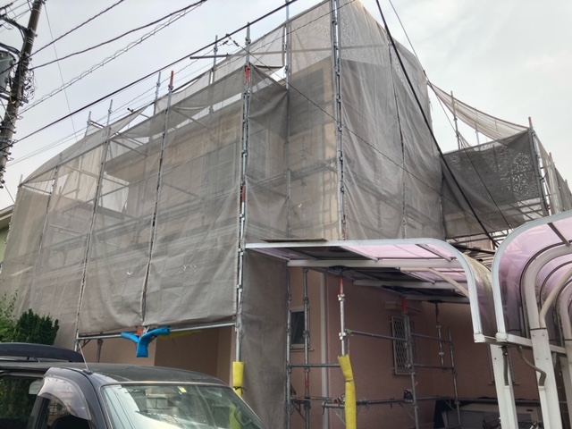 軒天改修・外壁塗装行うにあたり足場を設置します。