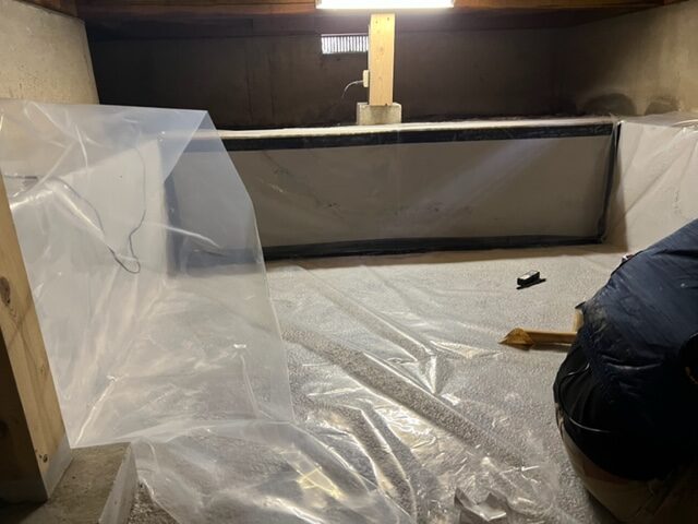 下からくる湧水を完全に止めるには、大規模な工事が必要である為に、我々が考えたのは、滲み出てくる水による木部は基礎の傷みを避けること。 また、湿気が上に極力上がってこないようにすることでした。