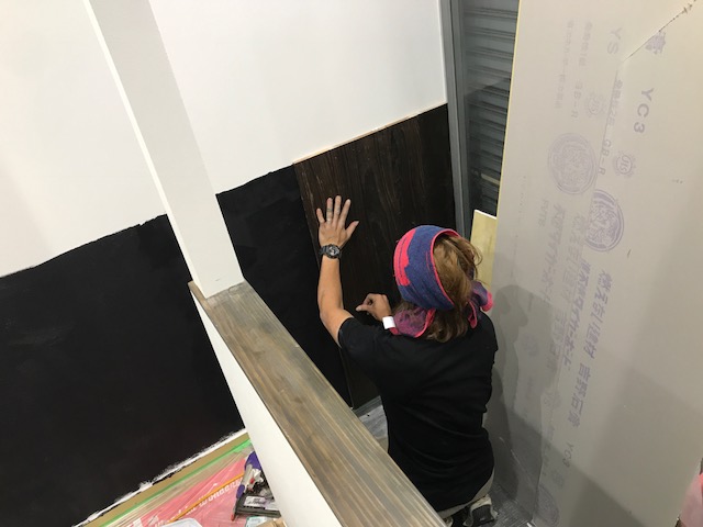 私個人的には、敢えて粗い感じでよいと思ったのですが、隙間からクロスが見えてしまうと格好悪いというので、下地に黒の塗装をすることにしました。