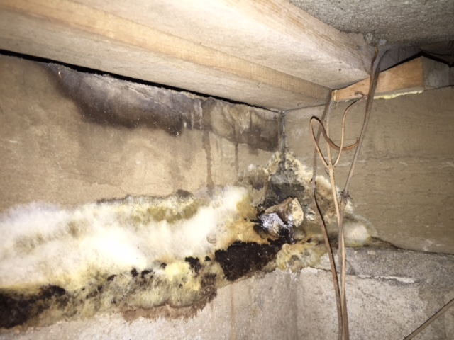 すると床下は湿気が多く、進んでいくと、土台にカビと腐食が進行し、かなり危険な箇所を発見!土台が腐食し大きな穴が!湿気が溜まりやすい、お風呂の真下の土台でした。