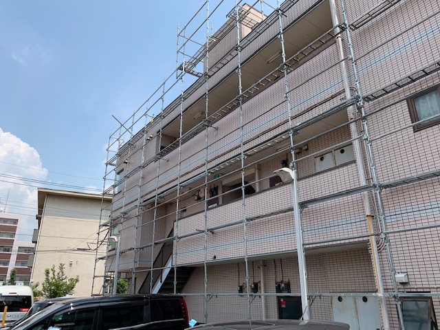 先ずは外部足場の設置を済ませました。